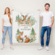 Soft Watercolor Design for a Whimsical Celebration Featuring a Deer, Rabbit and Fox amongst a woodland fir tree background.