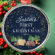 Cute woodland animals for a baby boy first Christmas. Our cute forest scene featuring a beer and trees set on a starry blue background. Matching items available in our shop.