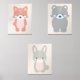 This cute wall art sets features a set of woodland animals such as a bear, fox, and bunny. Perfect for a nursery or kids' room! Personalize for your needs. You can find more matching products at my store.