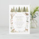 Invite friends and family to celebrate your little birthday with this sweet invitation, featuring a forest scene with woodland animals and pine trees.