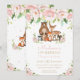 Woodland Animals Blush Pink Floral 1st Birthday Invitation