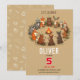 This charming kids’ birthday party invitation features adorable woodland animals — including fox, raccoon, bear, deer, and owl — sitting around a cozy campfire wearing party hats. Perfect for outdoor, nature, or camping-themed celebrations.