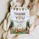 Set against a backdrop of lush woodland pine trees a rustic campfire and a cozy tent, this invitation captures the essence of a whimsical forest adventure. Whether you're hosting a backyard campout or a woodland-themed party, this invitation will surely delight your guests and set the stage for a fun-filled day of celebration.
