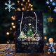 Beautiful whimsical Christmas Gift bag on a Dark Blue background featuring a cute Christmas illustration with a fox, a squirrel and a snowman on a green belt with some decorative stars and flowers. The text is customizable. Have fun wrapping your presents with these whimsical woodland gift bag.