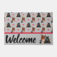 This woodland animals doormat design features a bear, deer, fox, owl, skunk, mushrooms and fall colour leaves.