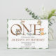 Woodland Animals First Birthday invitation. Personalize your details above. This design has the number one spelled out with woodland animals, mouse, owl, raccoon, rabbit & fox hanging around. A fun and whimsical design.
