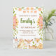 Celebrate your little one's special day with this charming woodland-themed 1st birthday invitation. Featuring sweet watercolor animals wearing flower crowns, delicate floral accents, and soft pastel colours, this design is perfect for a girl's first birthday party. Customize with your child’s name, party details, and RSVP information. Ideal for spring, summer, or garden-themed celebrations.