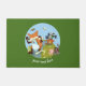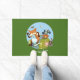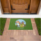 Don't forget to wipe your feet after your run. A door mat featuring an illustration of animals having a cross country long distance fun run. Fox effortlessly crosses the finish line in first place, with determined squirrel not far behind, and a tired badger over the hill in the rear. Enthusiastically supported by toad, sparrow, bumblebee and butterfly. An upbeat design for fans of running and cartoon animals. Change the default text to your preferred message or caption.