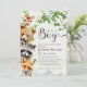 This woodland baby shower design was inspired by peaceful forest walks and cozy storybook animals. A sweet deer, bear, raccoon, and fox peek through soft greenery to celebrate your little boy. Perfect for parents who love nature, warm neutrals, and timeless baby shower style.