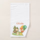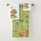 A cute bath towel set for kids! It features various cute woodland creatures such as bird, fox, deer, raccoon, hedgehog, bunny, squirrel and woodland elements like trees and flowers. Each item can be personalized with the name of the child. Make showering fun for kids!