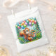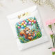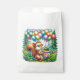 Woodland creatures themed birthday party for a boy or girl child. Watercolor squirrel with colourful balloons in green, yellow, orange, pink, purple and blue.