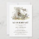 (We Can Bearly Wait) Woodland Baby Shower Invitation. With cute hand-painted watercolor woodland animals, this invitation is an ideal choice for your forest-themed baby shower. It features adorably whimsical artwork with cute bears, butterflies, and a house made out of a tree. The back is a simple white. Find matching items in the Modern Woodland Baby Shower Collection.