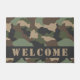 Welcome your guests in style with the trendy camouflage welcome door mat. The woodland camo pattern includes colours in khaki, sage green, tan, brown and charcoal black. The perfect housewarming gift for family and friends that are in the military or love camouflage. Designed by artist ©Susan Coffey
