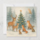 Share the magic of the season with this elegant woodland Christmas card. A festive tree decorated with golden ornaments glows in a snowy forest as deer, foxes, rabbits, and an owl gather together in harmony.