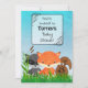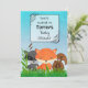 Woodland creatures forest animals, fox, raccoon, hedgehog and squirrel. Personalize this invitation by adding your information onto this cute teal blue aqua and black coloured baby boy baby shower invitation in the customize area.