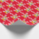 Cute hand drawn cartoon fox in Santa hat with a snowflake and red background Christmas wrap.