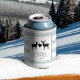 Commemorate your wedding in chic woodland style with these wedding favour can coolers, featuring a pair of deer (a buck and a doe) joined by a single heart. Personalize with the couple's names and wedding date beneath. A striped background in wintry ice blue and white finishes this rustic winter wonderland look.