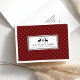 Spread good cheer this holiday season with our simple and elegant card that's perfect for your business or corporate mailings. Your holiday greeting and company name are displayed in the centre in crisp black lettering with a pair of buck deer silhouette illustrations joined by a single snowflake, surrounded by a subtle pattern of dotted diamonds in festive holiday garnet red. Add an optional inside message using the field provided.