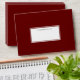 Festive holiday garnet red envelopes coordinate beautifully with our modern rustic Woodland Deer holiday card collection. Design features your return address on the back flap in white lettering with a pair of buck deer silhouette illustrations joined by a single Nordic style snowflake. Lined in a subtle pattern of black and white dotted diamonds.
