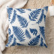 Woodland Fern Pattern, Cobalt Blue on White Throw Pillow