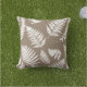 Outdoor pillow in woodland fern silhouette pattern pillow adapted from vintage botanical illustrations, digitally rendered and coloured, in white and taupe tan