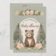 This adorable woodland forest design features a cute brown bear surrounded by blush florals and trees.
