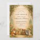 A heart-melting woodland design featuring a sweet gathering of forest friends beneath a soft storybook canopy. Fox, fawn, bear, raccoon, and bunny sit together in a warm autumn meadow framed by gentle trees and vintage parchment tones. The earthy palette and delicate botanical details create a cozy, nostalgic feel—perfect for a nature-inspired celebration. Fully customizable to make it uniquely yours.