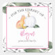 Baby shower bookplate sticker featuring a watercolor woodland fox and white pumpkin with a boarder of botanical foliage. Use the template fields to add your personalization in charcoal grey and pink over a white background. A great addition for baby's first library or use as a custom "This Book Belongs To" sticker. Pair's beautifully with my matching Bring a Book request card. To see more visit www.zazzle.com/dotellabelle