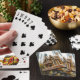 Step into a fairy-tale forest with this enchanting playing card deck featuring an elaborate gingerbread mansion perched on a stone base and adorned with icing, candy swirls, and ornate windows. The towering pine backdrop makes the confection feel both magical and monumental—like a hidden woodland treasure waiting to be discovered. Perfect for holiday game nights, collectors, and anyone who loves imaginative gingerbread architecture taken to storybook extremes. This deck deals pure winter wonder with every hand.
