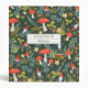A personalized whimsical green and red woodland themed illustration designed by Shelby Allison featuring a tiny gnome character, mushrooms, flowers and foliage.