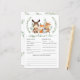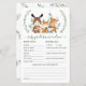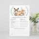 Personalize this cute colourful greenery woodland baby predictions and advice shower game card with your own wordings easily and quickly. This design features illustration of rustic watercolor greens, leaves foliage and adorable forest animals: fox, deer, squirrel, rabbit, moose and raccoon.