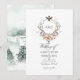 Watercolor wedding invitation featuring a whimsical forest woodland-themed crest customizable with the initials of the couple. The QR code on the reverse directs to your wedding site where people can learn more and rsvp.