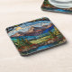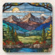 Woodland mountain scene vintage stain glass coaster