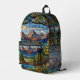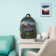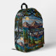 Woodland mountain scene vintage stain glass printed backpack