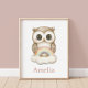 Add a dreamy touch to your baby's room with this Boho Woodland Owl wall poster. Featuring a cute watercolor baby owl perched on a soft pastel rainbow, this adorable design is perfect for a boho themed nursery or as a unique gift for new parents. Customize it with a name for a bespoke, personal touch!