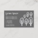 A modern business card with an attractive, original woodland motif. Suitable for a variety of businesses. Ready to be customized. The company details are on the front with name and contact details on the reverse side, on a mid grey background. However the background colours are customizable. NB The tree graphic on the back is in white.