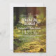 Cute and rustic rehearsal dinner invitation with enchanted forest trees background and handwritten fancy swirls typography.