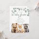 If you love simple watercolor style, this invitation is right for you. The invitation features an elegant design, with a soft, white background with delicate greens around the edge. In the centre, the party details are beautifully scripted in a green text exuding an air of sophistication. Baby woodland animals are along the bottom. Invite guests to your baby shower party in style. Background colour and text is editable.