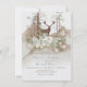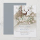 Beautiful Woodland forest with pine trees, deer stag, and pastel and neutral soft green, blues and pink foliage on a faux, very light grey background. The back is a dusty blue grey background. Perfect for a wedding with a nature mountain side feel.