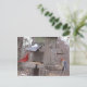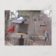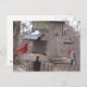Nature animal photography, of a male northern cardinal and a woodpecker on a feeder, adorn this post card for the birder or nature lover