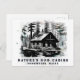 Winter Rustic Cabin in the woods during the DAY TIME. The SKETCHED art work CABIN , LOG CABIN , COTTAGE is BLACK and WHITE.