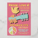 Woodstock inspired Hippie Birthday Party Invitation. Features Real Gold Fonts, a guitar with a dove, peace sign, flower power flowers, clouds and rainbows. Great for a 60's, 70's, Boho, or music party! All wording can be changed to fit your needs. Select Gold, Silver or Rose Gold in real foil! Want to customize this design even further? Edit using Design Tool under Personalize this template - Details