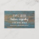 Distressed wood, custom business card template with white text in various fonts. Customize four lines over blue painted wood image. Reverse is blank. Changing the size may mean the design and / or wording does not fit correctly.