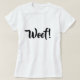 White, with cute black text....Woof! Perfect for a night out on the town or afternoon at the park. The text style, size, and/or colour can be changed, using the edit menu. Several colours and sizes available.