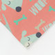 Dog lovers of every age both kids and adults will love this cute, fun, whimsical dogs and bones design on items for the home, office, and personal use featuring light blue dogs, dog bones of aqua and clay, and text that reads Woof on a coral background.