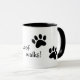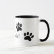 paw prints with the woof walks! logo; black ringer mug