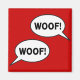 Woof Woof barking dogs in word balloons. Change shirt colour if desired and change background colour on some products. Add your own custom text or image if you like.
