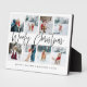 Send a beautiful personalized gift to your friends and family that they'll cherish forever. Special personalized pet photo collage plaque to display your own special pet photos and memories. Our design features a simple 8 photo collage grid design with "Woofy Christmas" designed in a beautiful handwritten black script style. Each photo is framed and centered within a simple gold-colored border. Customize with family names.