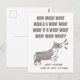 A postcard form Christm-s card featuring a barking corgi dog: woofy woofmas