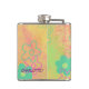 Have fun and party with this colourful flask. The word art WooHoo says it all with the customizable words Party Time below the word text art. Personalize with your name on the back. The colourful graphic art background with the words WooHoo in text art is on an orange and lime green ombre background. The art design background is textured with flowers and line outline flowers. Colours: Turquoise teal blue orange lime green purple. Have fun and party on!